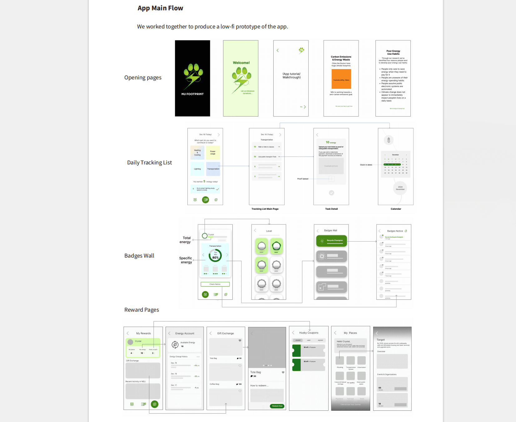 Our research revealed a gap between environmental awareness and real action at Boston. NU Footprint was designed to bridge this gap through habit tracking, real-time data, goal setting, and incentives, encouraging sustainable behaviors and reducing campus energy consumption over time.