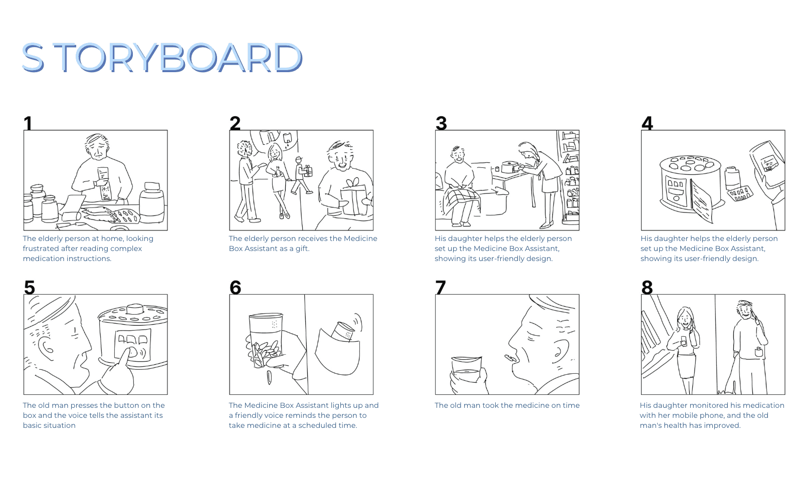 Smart medicine box assistant helps elderly living alone take OTC cold meds safely with audio reminders.